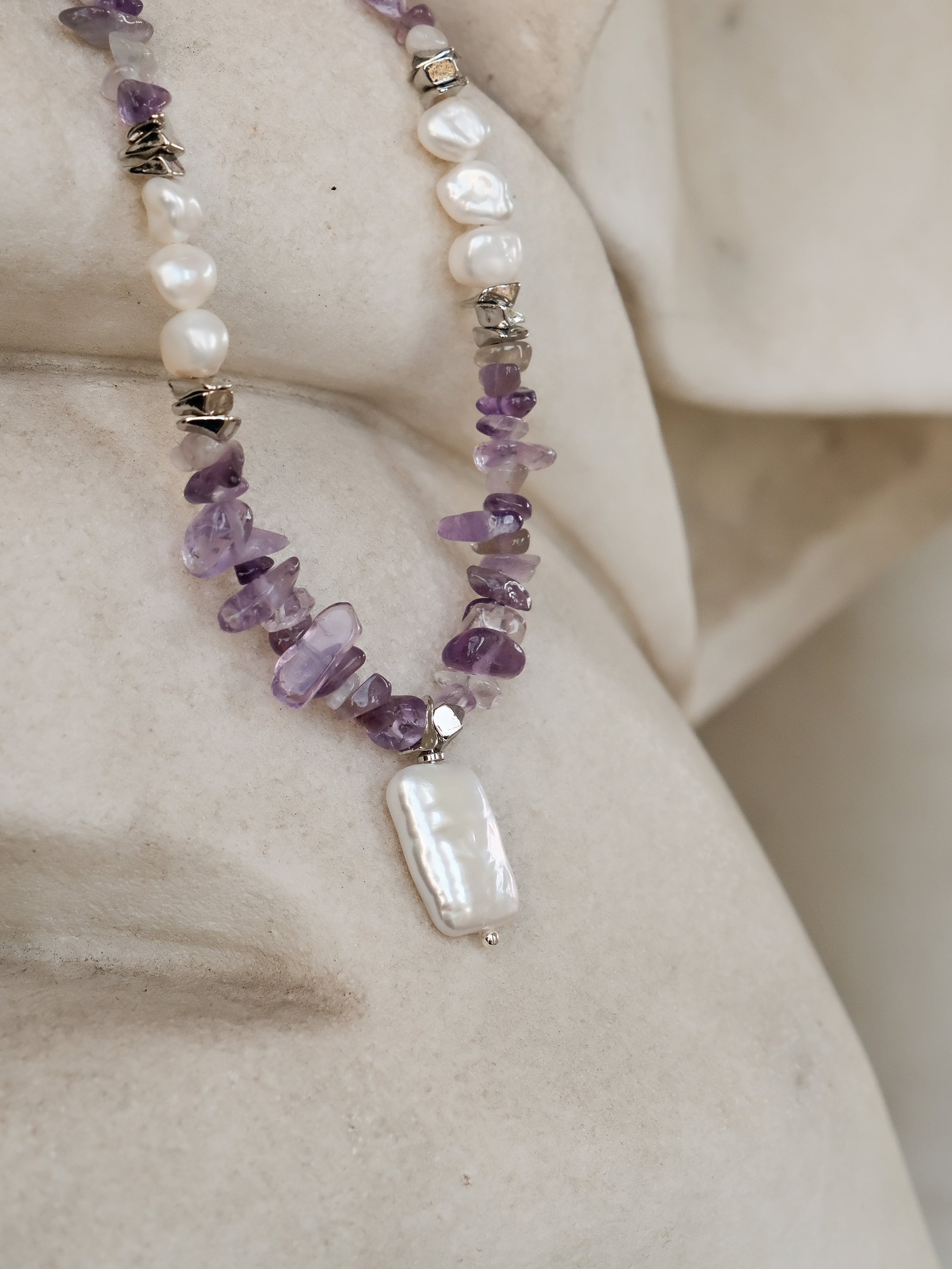 Amethyst & Keshi Pearl Chakra Healing Necklace
